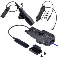Metal CQBL-1 Box Aiming Laser Sight Indicator(with IR Laser + Red/Green/Blue Laser), & New Modular Dual Wire Remote Pressure Switch(SF+2.5 Plug) Combo, & M600C Strong LED White Flashlight